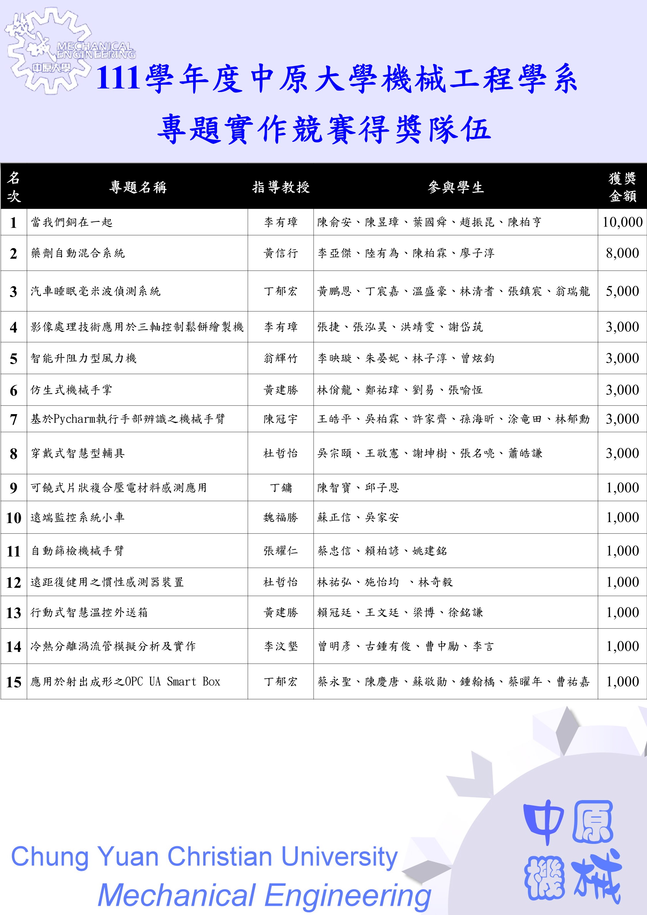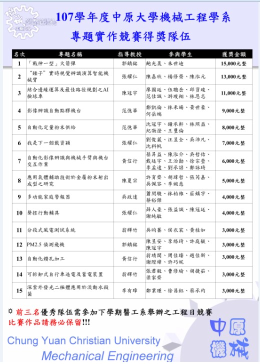 以機械實務之實作為訓練平台,整合學生學科之實現能力,做好專業職能準備,特舉辦競賽活動,期許提升學生專業興趣及信心,加強教學成果及強化學習內容。